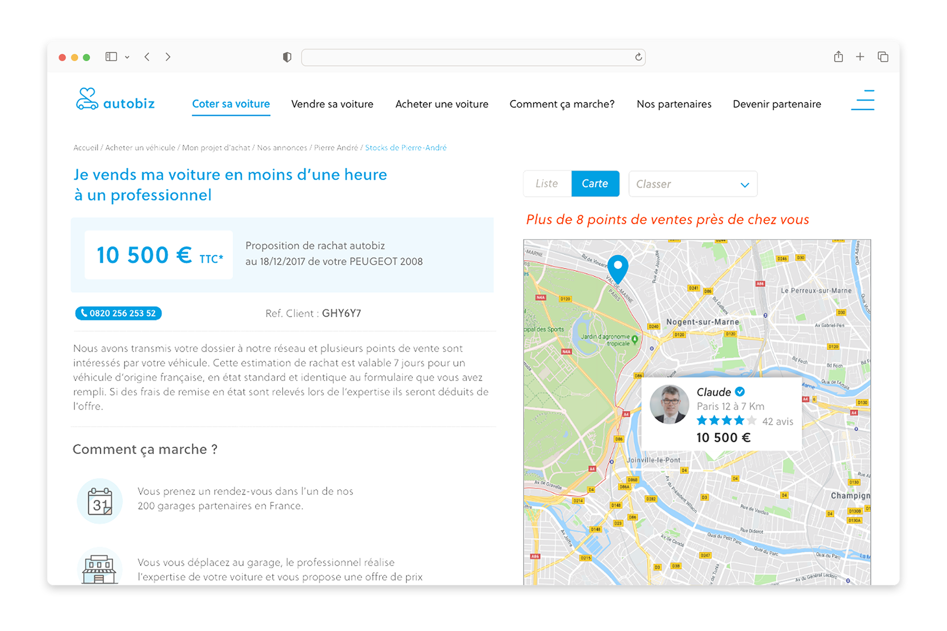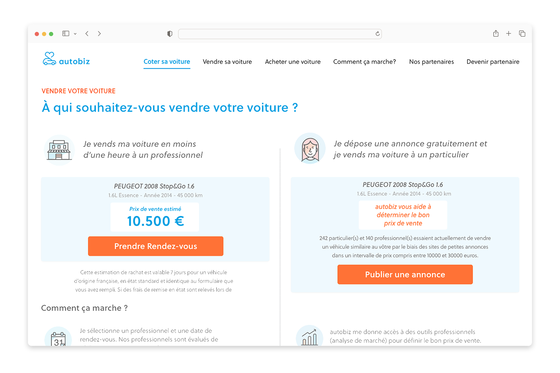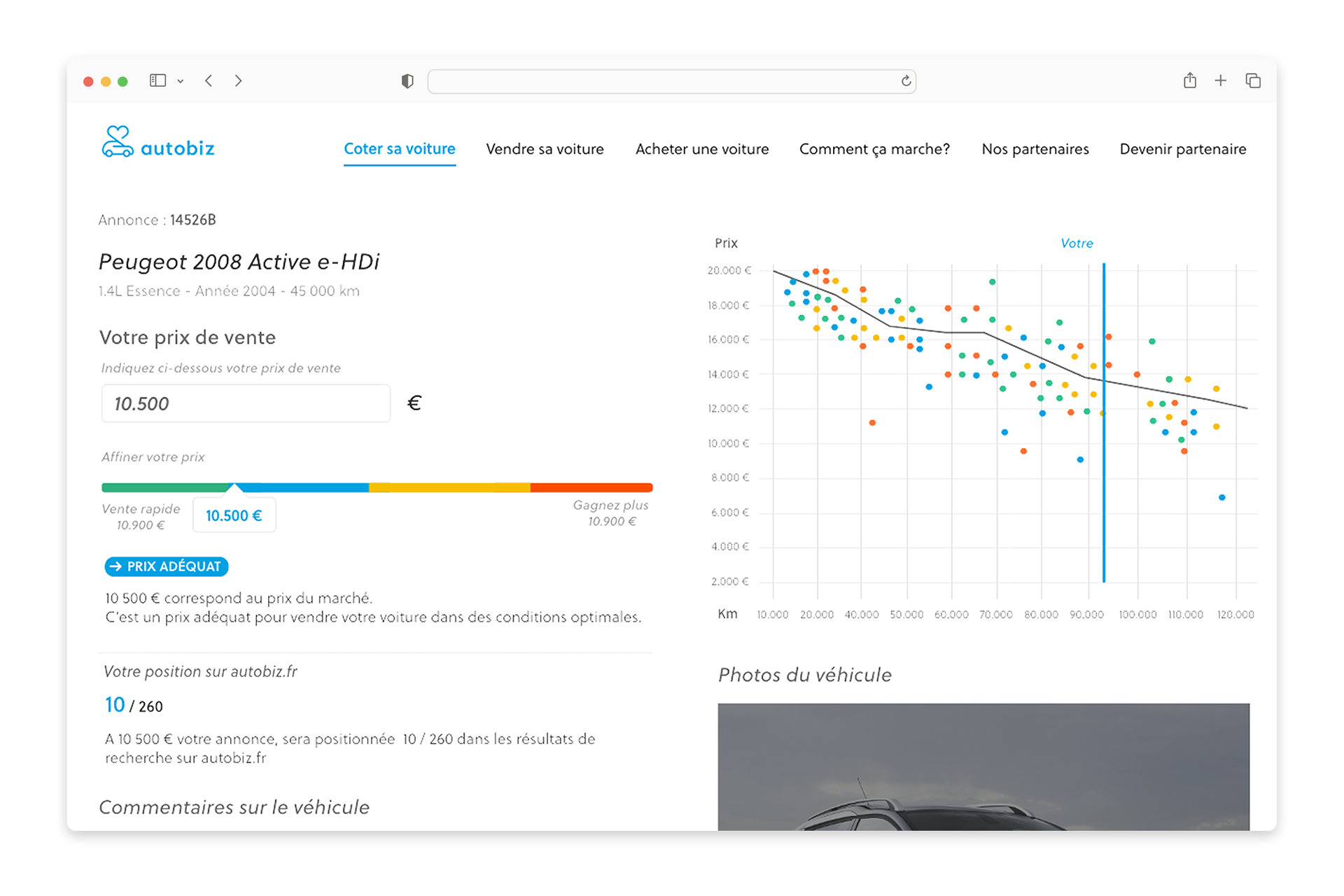 Autobiz is a French company specializing in online car valuation and vehicle trade-in services. The platform allows users to estimate the value of their vehicle and connect with professional buyers.