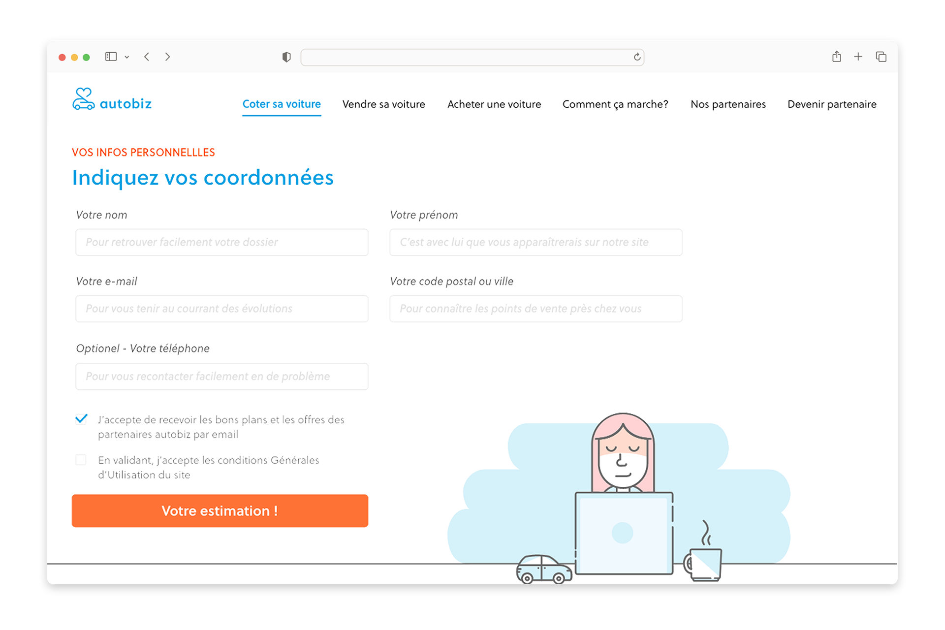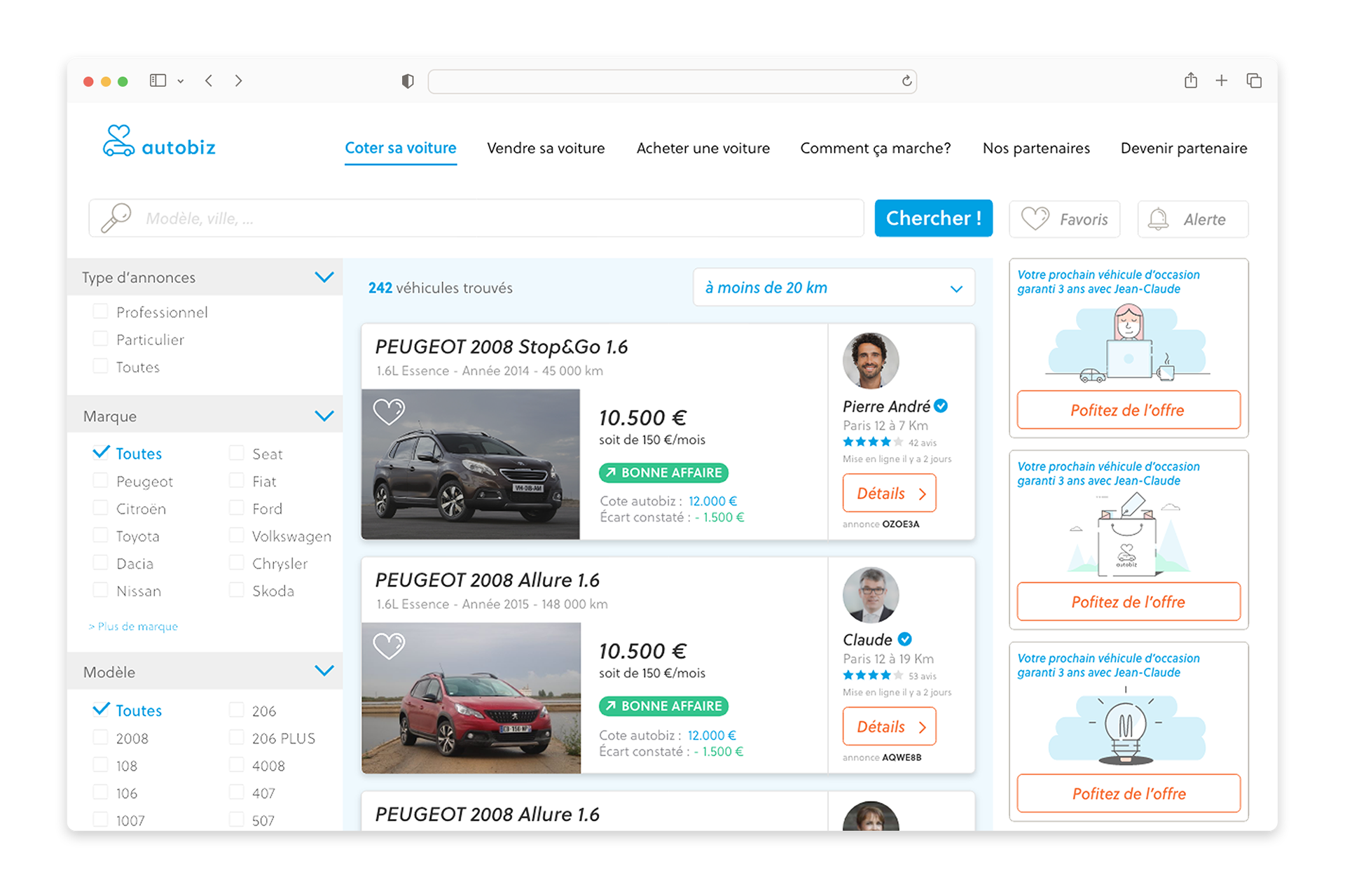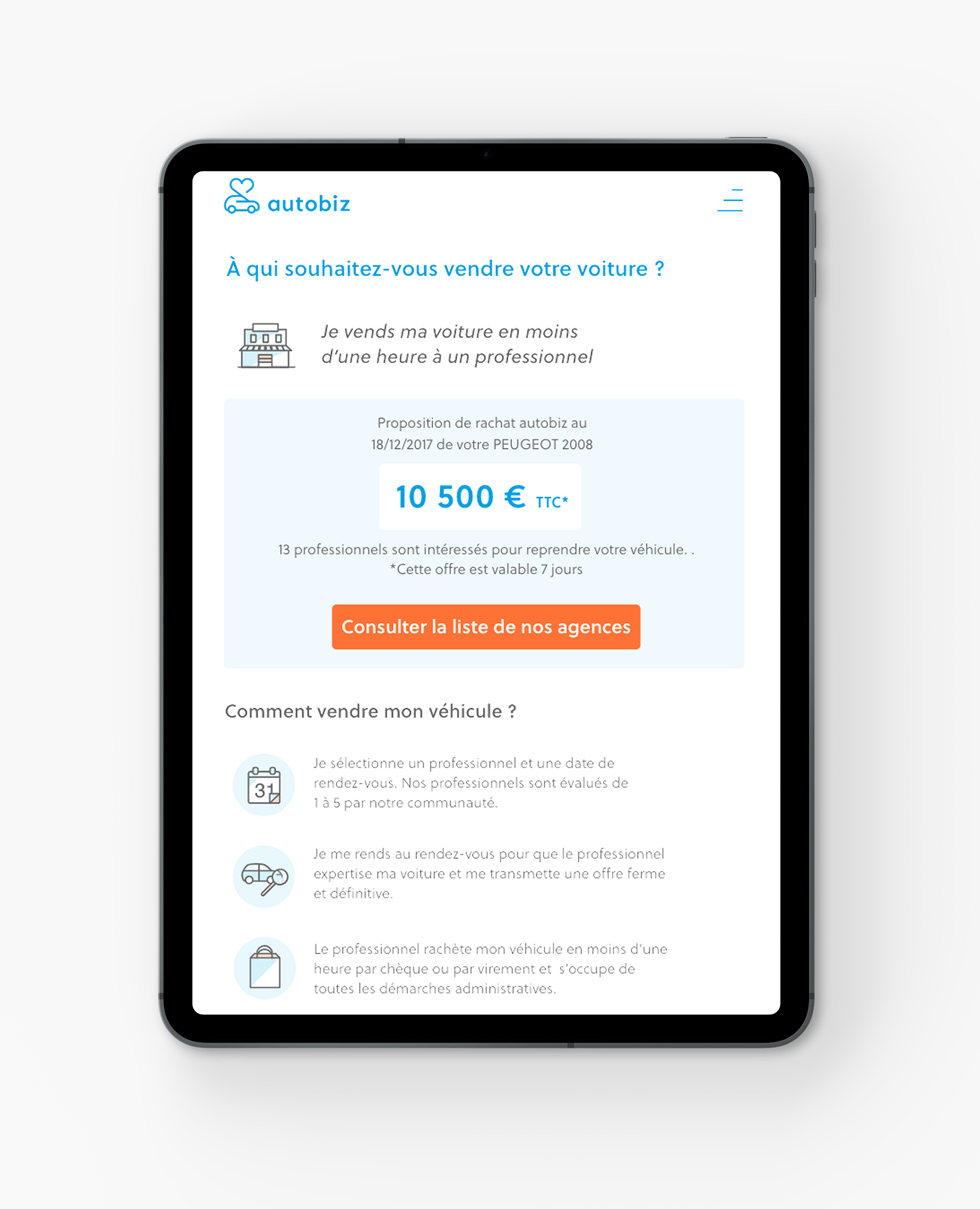 Autobiz is a French company specializing in online car valuation and vehicle trade-in services. The platform allows users to estimate the value of their vehicle and connect with professional buyers.