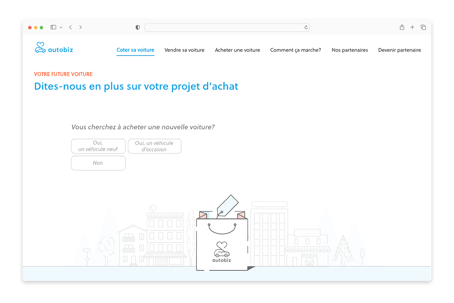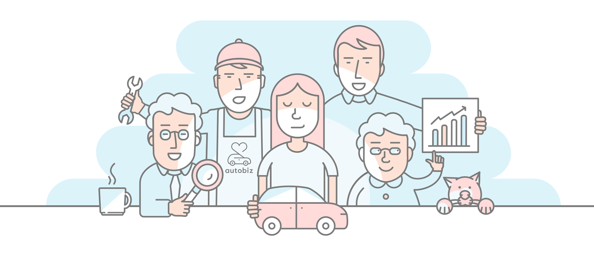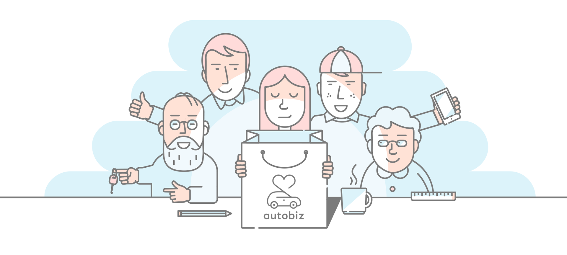 A series of custom vector illustrations was developed to differentiate Autobiz from competitors often relying on generic automotive imagery.