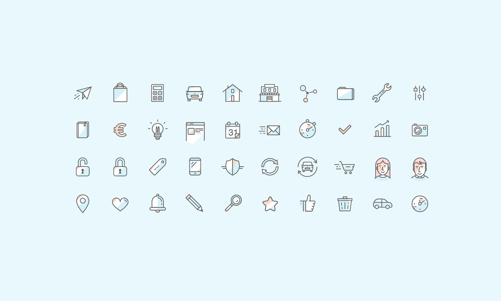 A modular system of vector icons was designed to represent services, interactions and features across the platform.