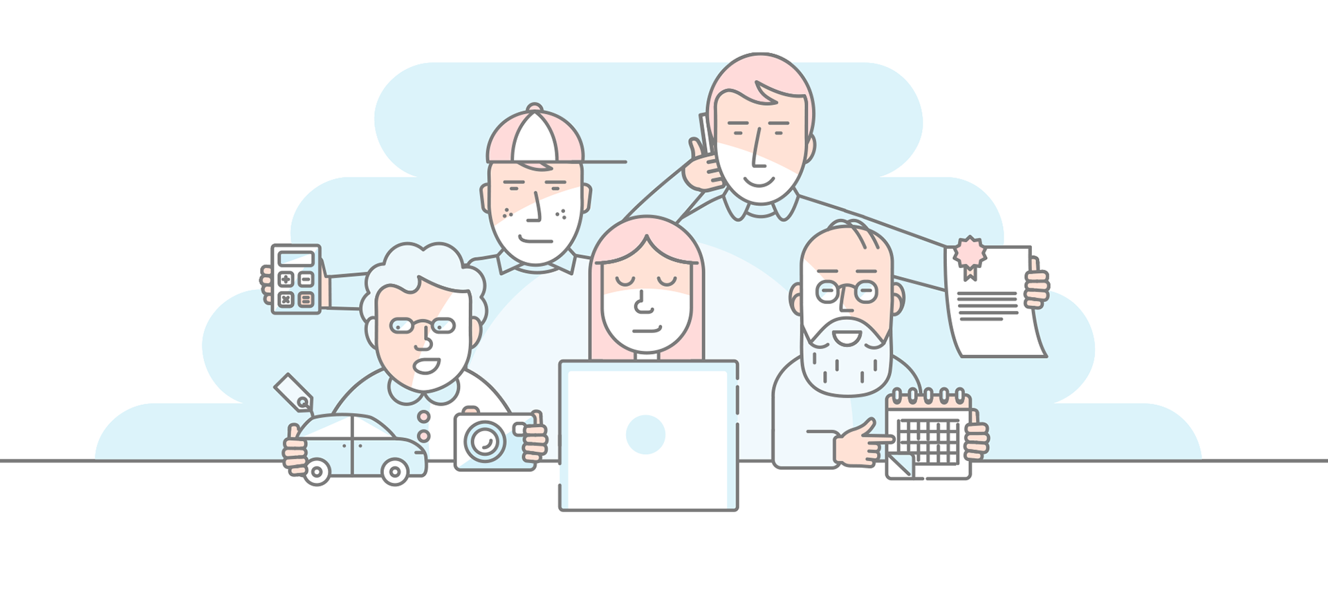 These illustrations depict characters and everyday automotive situations, helping to communicate the platform’s services while emphasizing proximity, technology and the company’s start-up spirit.