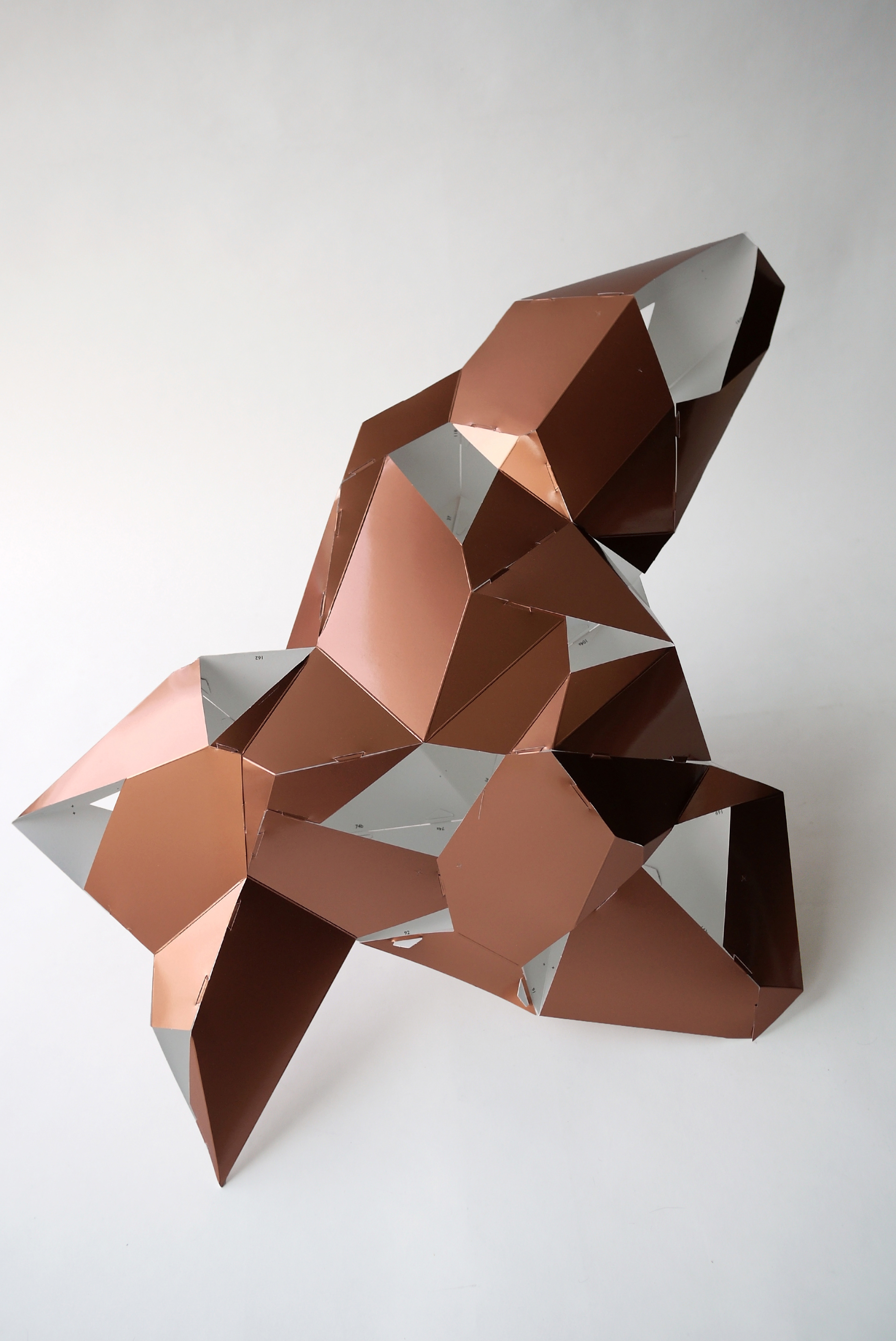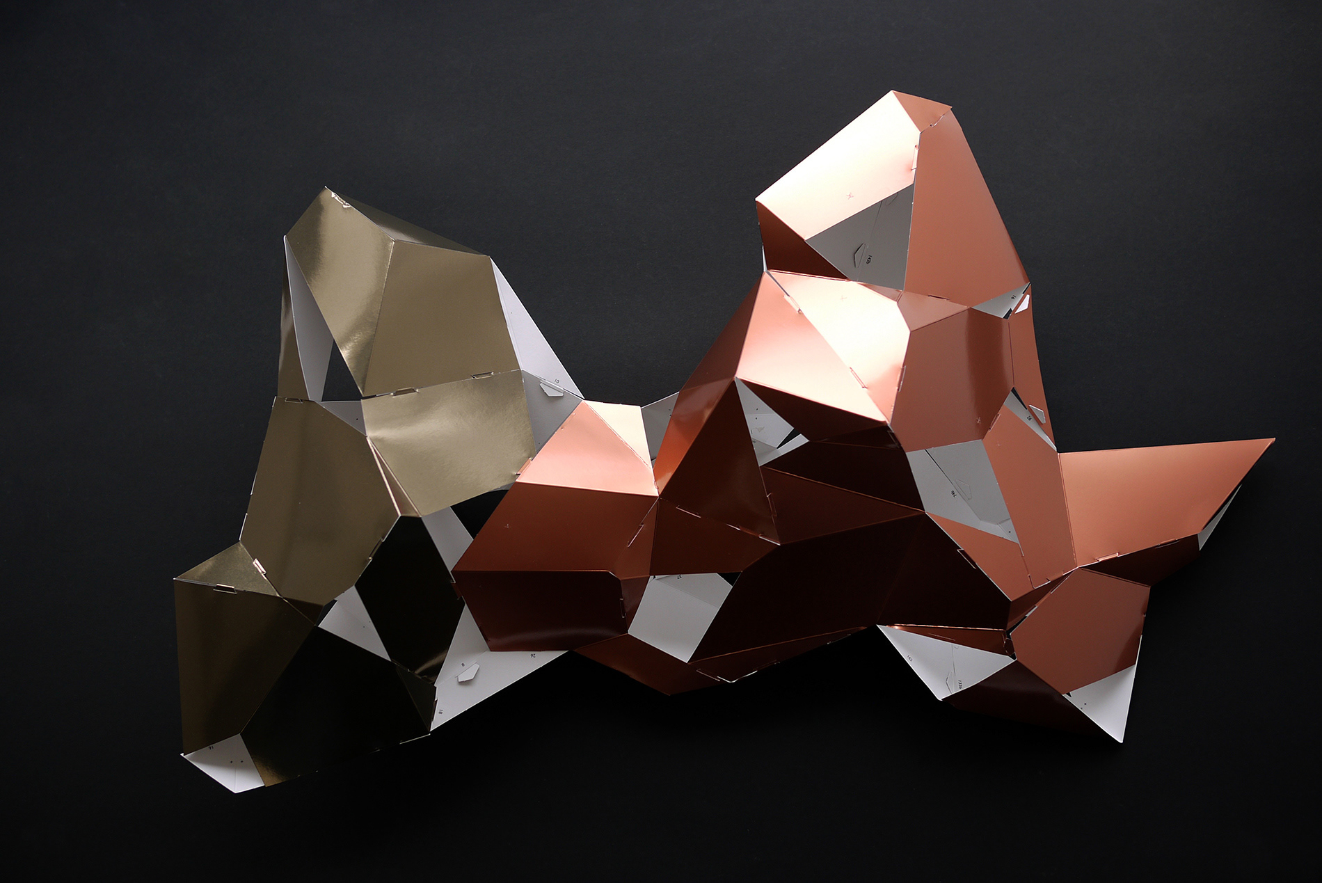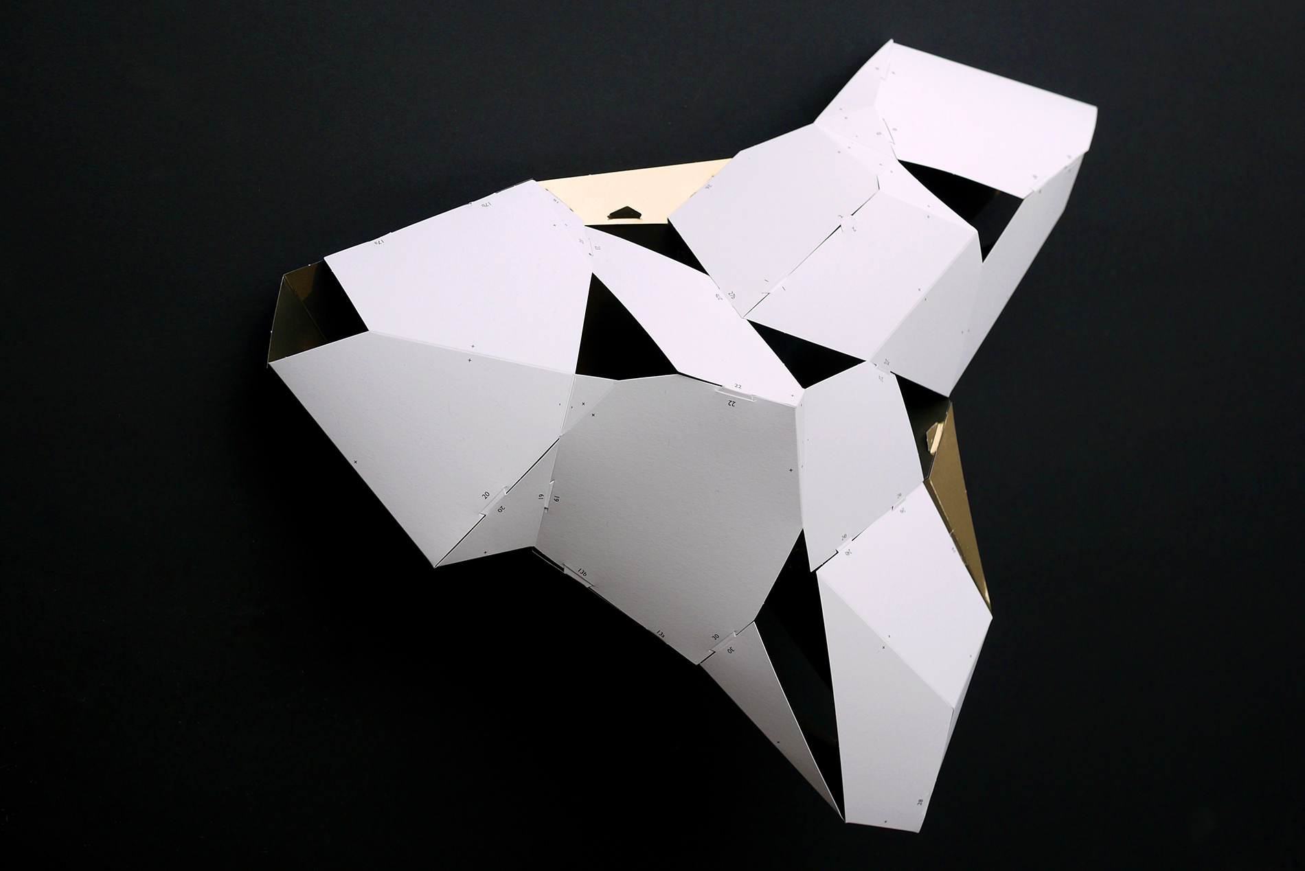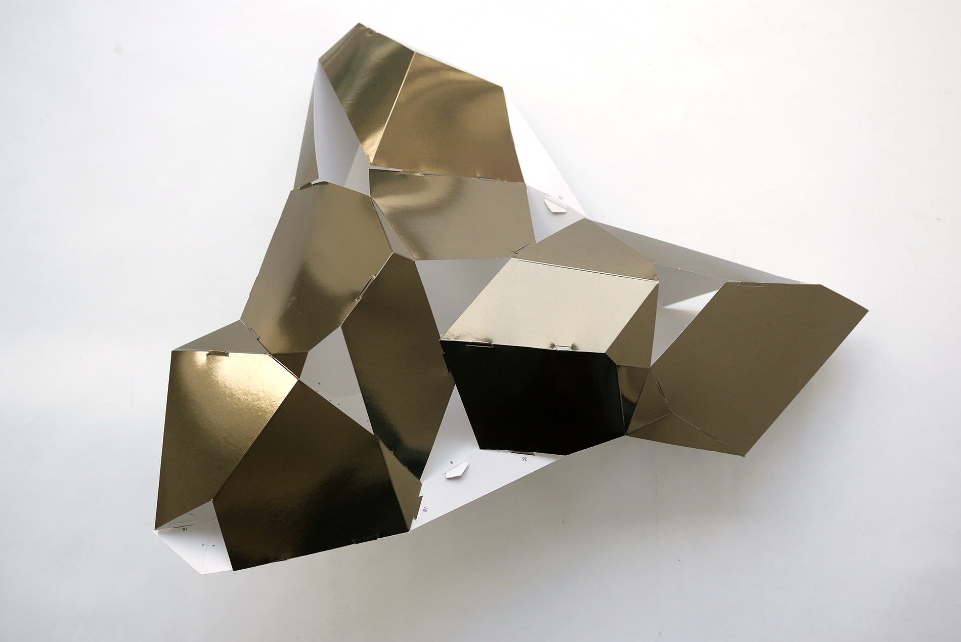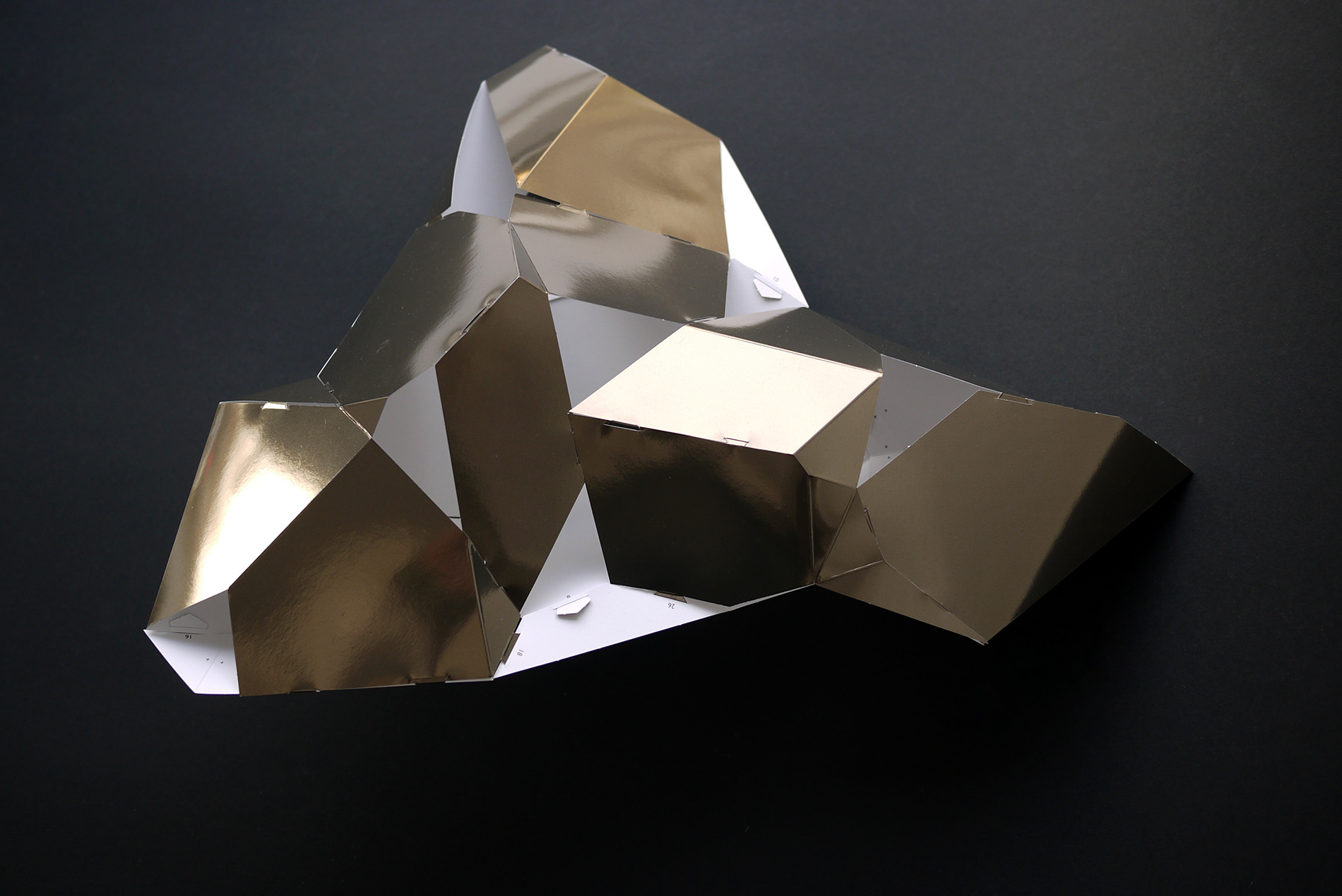 For the BotoxCloud project, which we created in collaboration with designer Brice Delarue and the SAQ studio for Zirkumflex, we sought to explore how editorial design can extend a spatial and conceptual installation. We designed a printed piece conceived as an object to be handled: two abstract models to cut, fold, and assemble, transforming the flat surface into volume. The generous format (67 × 97 cm open) and Chromolux 250 g/m² paper allowed us to work with the tension between gloss, rigidity, and precision. The finishing details — die-cutting, embossing, and lamination — physically translate the idea of “inflation” and transformation embedded in the name BotoxCloud. Produced in a limited edition of 500 copies, this publication bridges graphic design, architecture, and the printed object. It invites the reader to become an active participant — to construct the piece and experience the dialogue between surface and volume. Through this project, we wanted to show how layout, material, and gesture can turn editorial design into a truly three-dimensional space.
