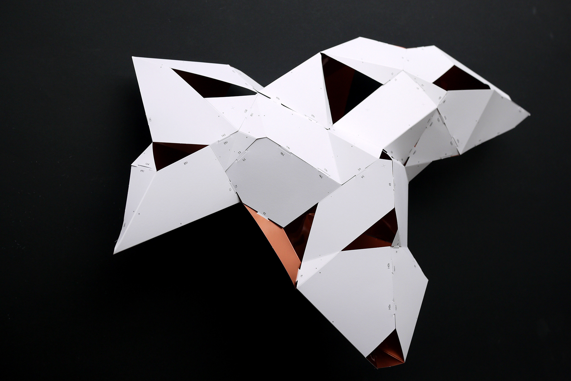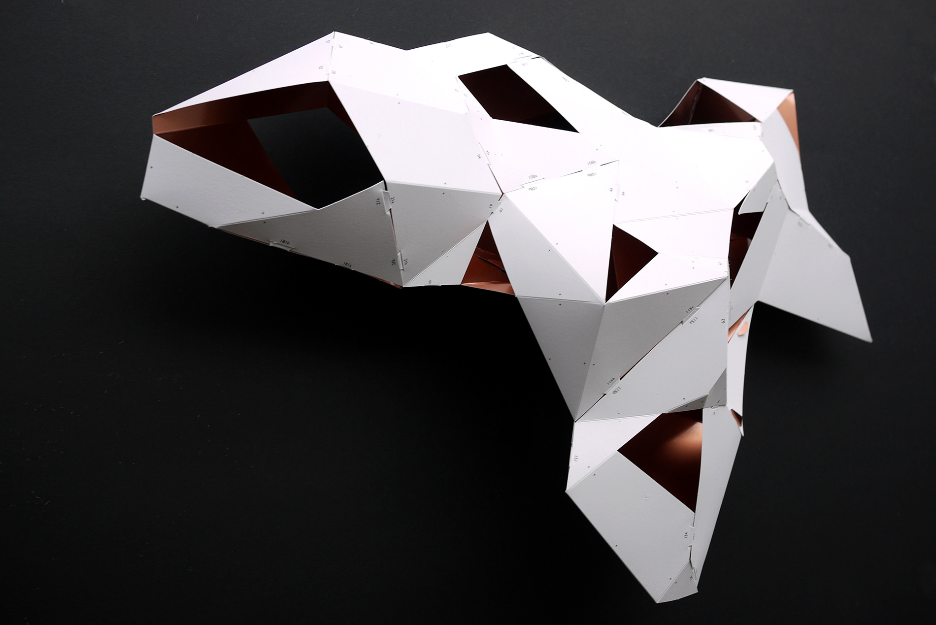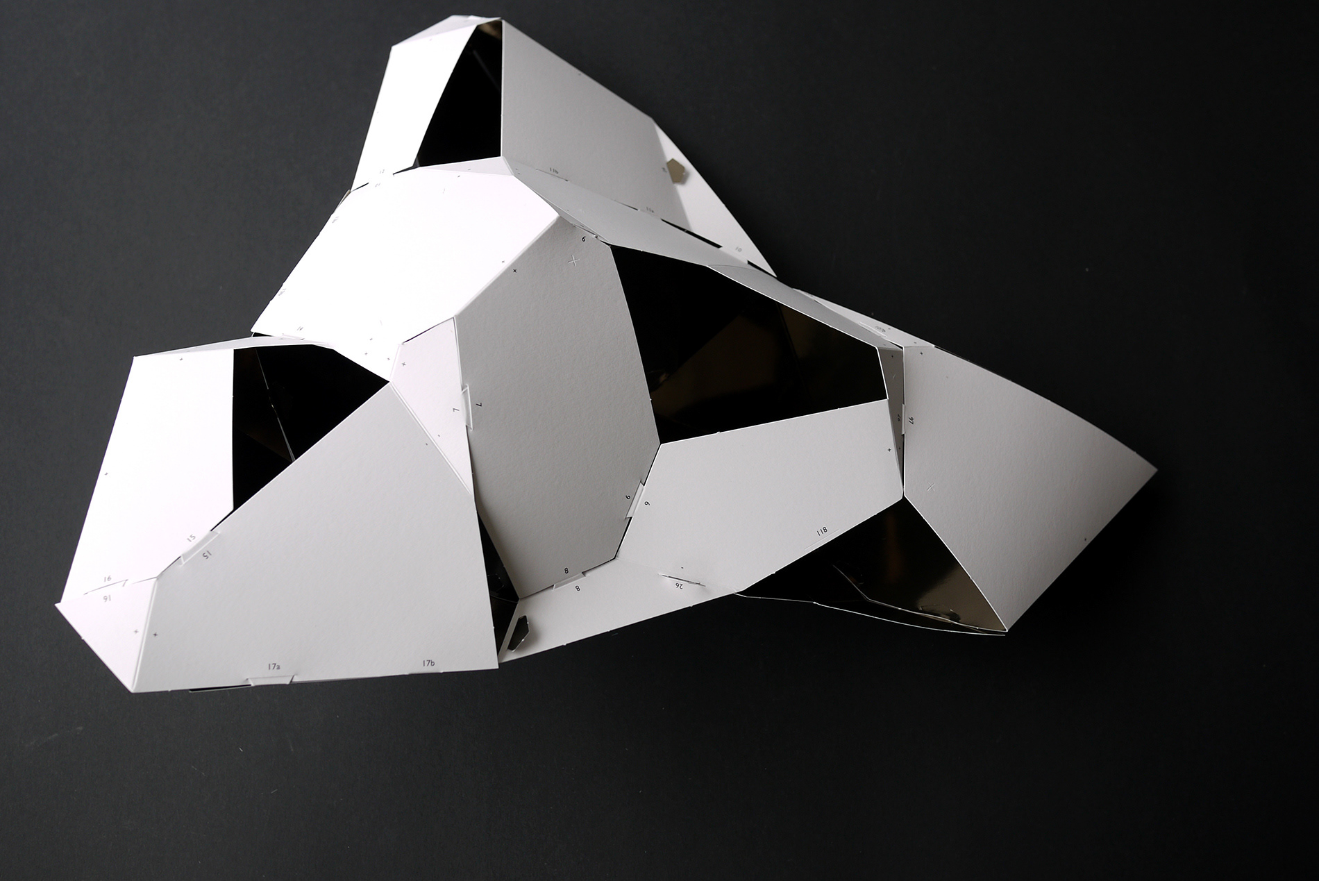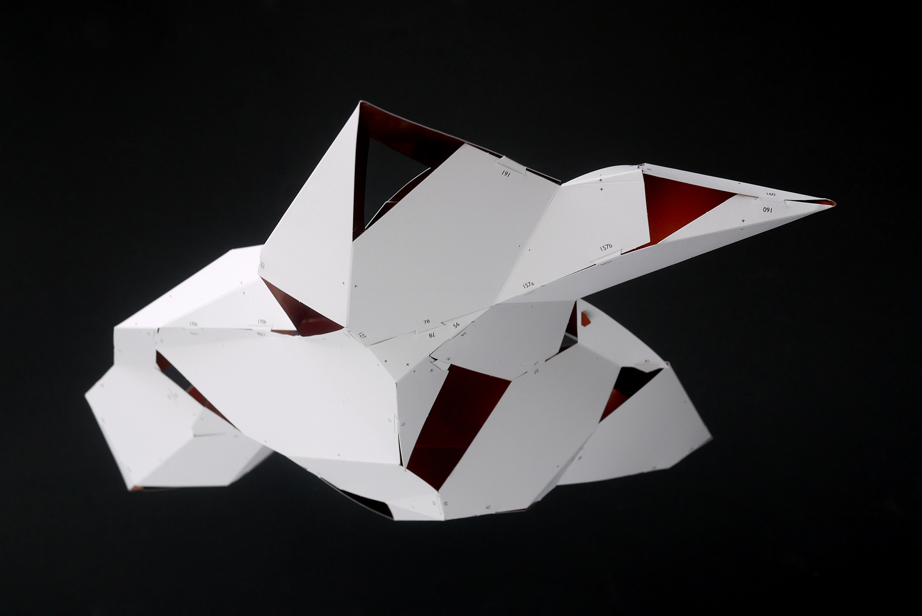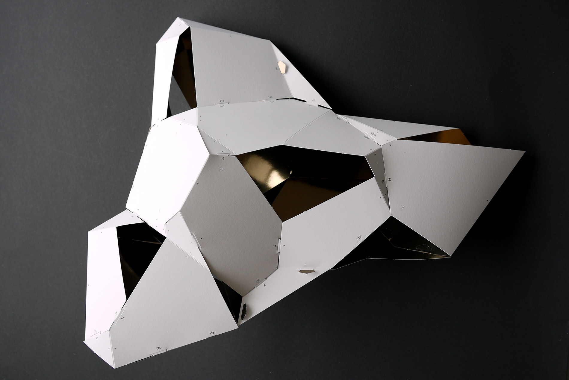 For the BotoxCloud project, which we created in collaboration with designer Brice Delarue and the SAQ studio for Zirkumflex, we sought to explore how editorial design can extend a spatial and conceptual installation. We designed a printed piece conceived as an object to be handled: two abstract models to cut, fold, and assemble, transforming the flat surface into volume. The generous format (67 × 97 cm open) and Chromolux 250 g/m² paper allowed us to work with the tension between gloss, rigidity, and precision. The finishing details — die-cutting, embossing, and lamination — physically translate the idea of “inflation” and transformation embedded in the name BotoxCloud. Produced in a limited edition of 500 copies, this publication bridges graphic design, architecture, and the printed object. It invites the reader to become an active participant — to construct the piece and experience the dialogue between surface and volume. Through this project, we wanted to show how layout, material, and gesture can turn editorial design into a truly three-dimensional space.