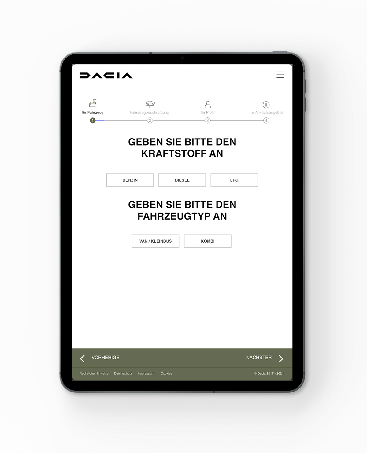 The user journey was structured into five clear steps: